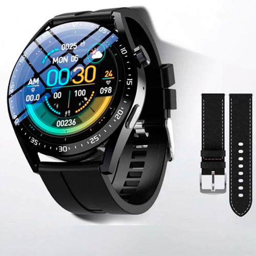 Display AMOLED de 1,43”, bateria de até 14 dias e resistência à água (5 ATM). Monitora frequência cardíaca, oxigênio no sangue, sono e atividades físicas. Com GPS, controle de música e assistente de voz